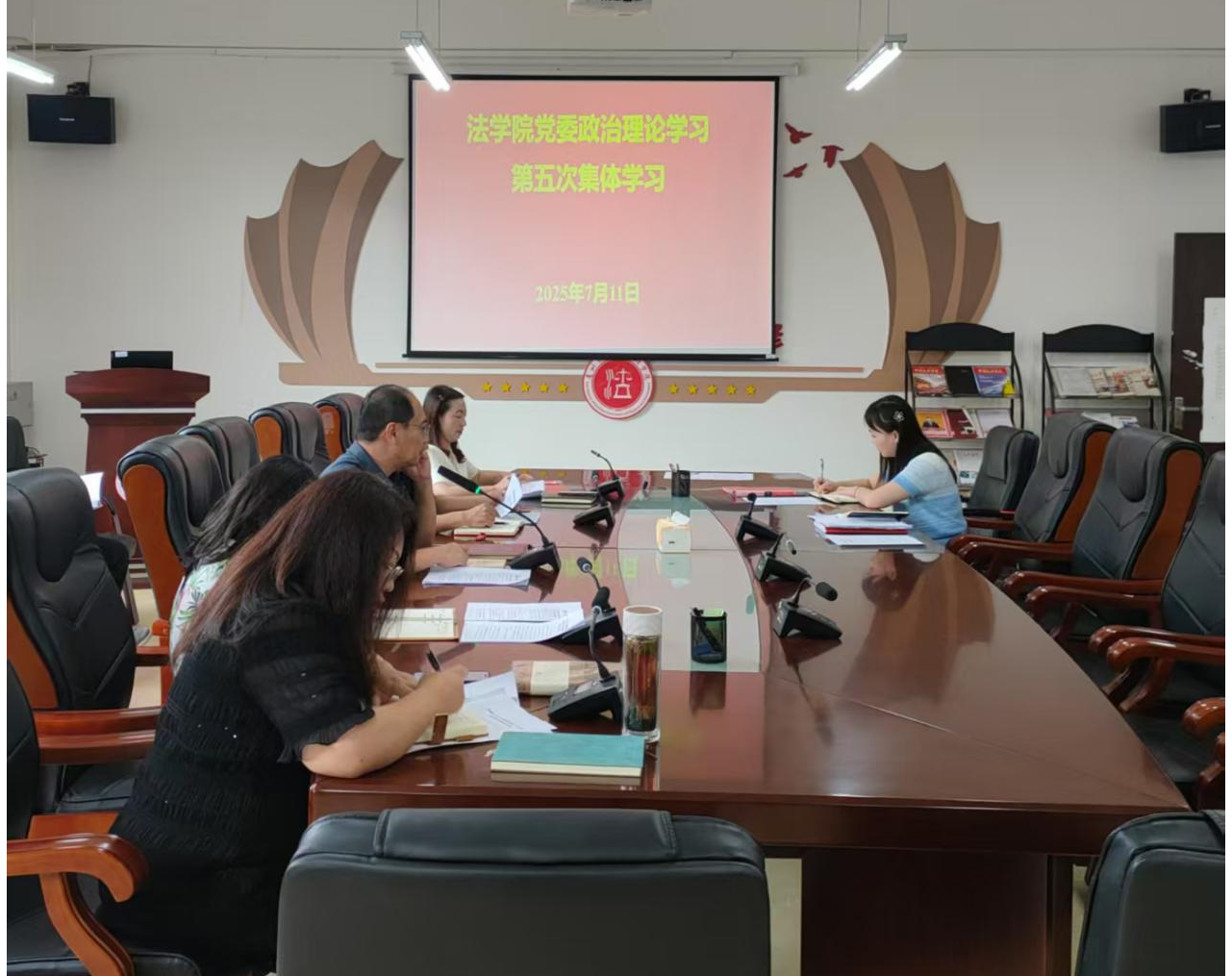 (法学院 潘吉脉 报道|摄影 )7月11日下午,法学院党委2025年度第五次教职工政治理论集体学习(扩大)研讨会在西区文德楼310会议室召开。院党委书记邵新顺主持会议并讲话。院领导曹务坤、代莉莎、彭华、宋昭澜出席会议,全体教职工参加。