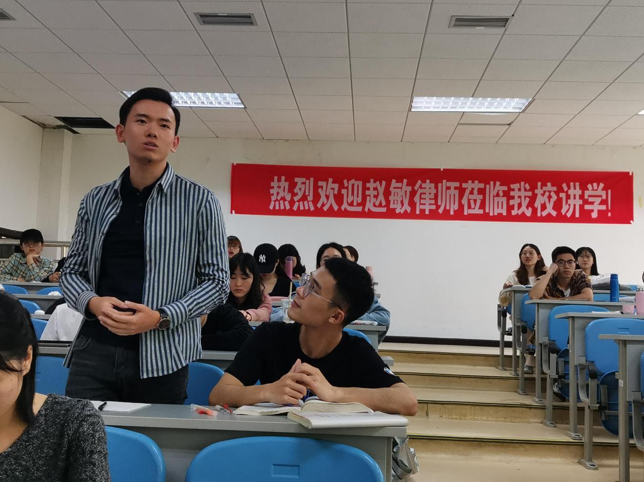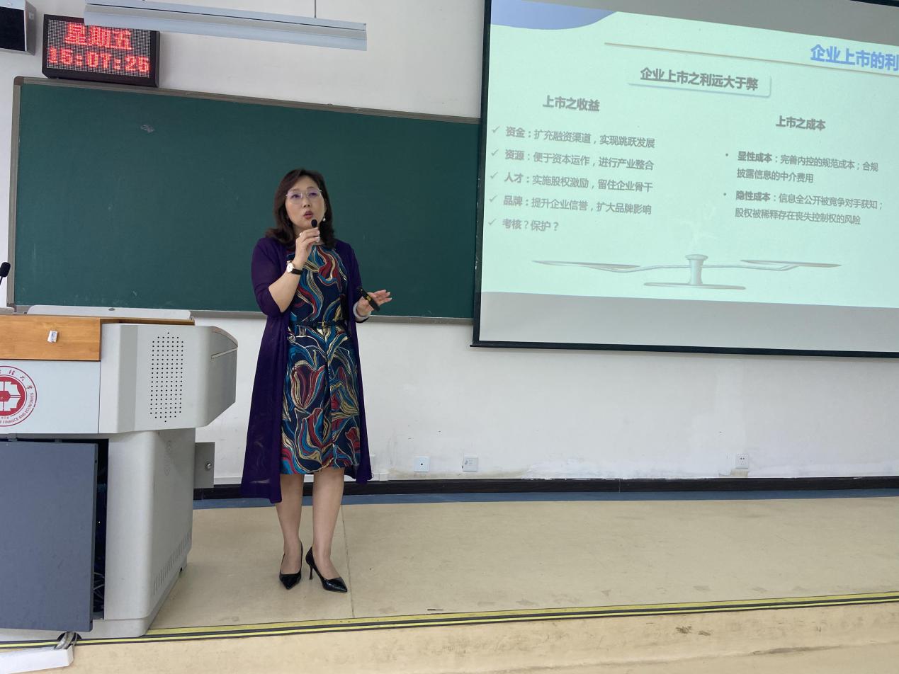 为营造学生学术创新氛围,提高学生的学习兴趣和学术创新参与率,活跃学术思想,引发学术争鸣,促进学术交流。2021年6月11日下午2点,我院特邀经济学博士、法学硕士赵敏律师在贵州财经大学花溪校区乐学楼1-2阶梯教室作“资本市场的法律问题”专题讲座。法学院副院长陈玉梅(正处级、主持工作)列席,法学院辅导员杨兴莉主持,法学院全体研究生参加此次讲座。