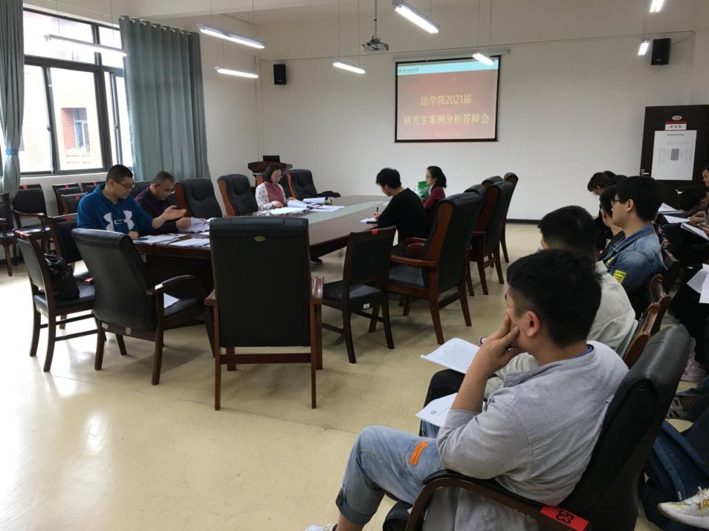 2021年5月28日上午,法学院在文德楼310会议室举行了案例分析答辩汇报会。曹务坤、张斌、阙成平等硕士研究生导师以及2021届法律专硕研究生一起参加,法学院副院长陈玉梅主持会议。