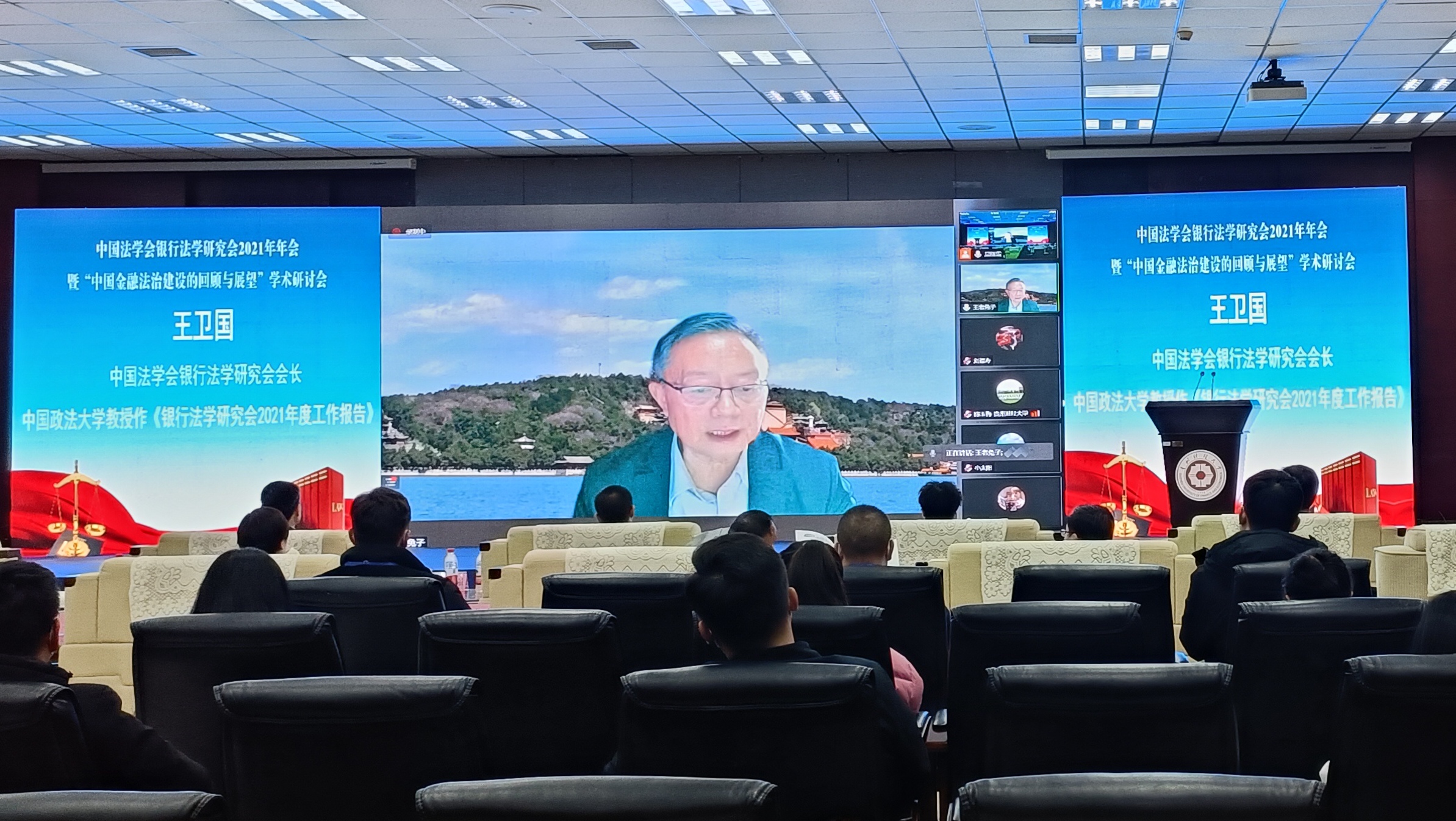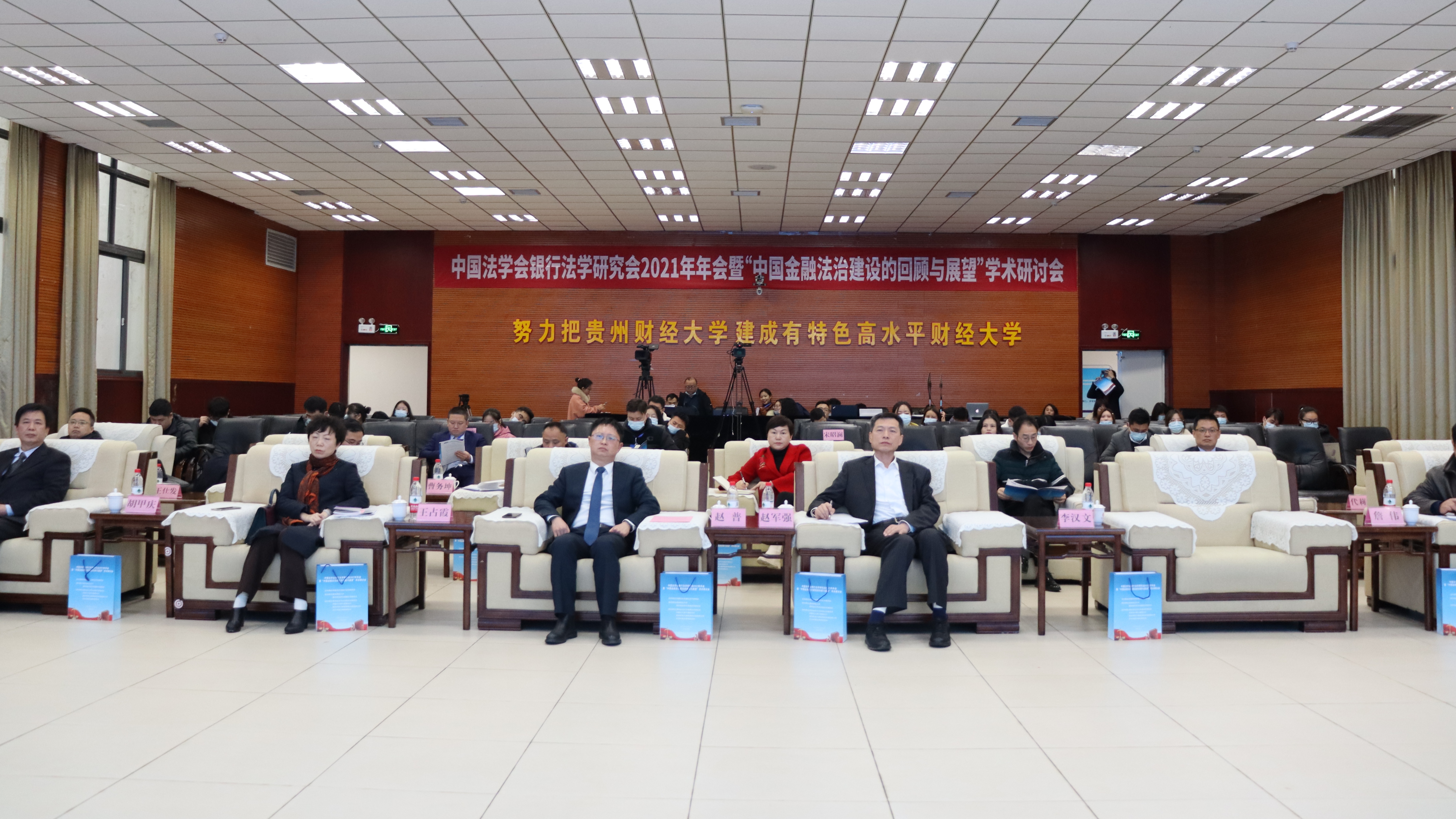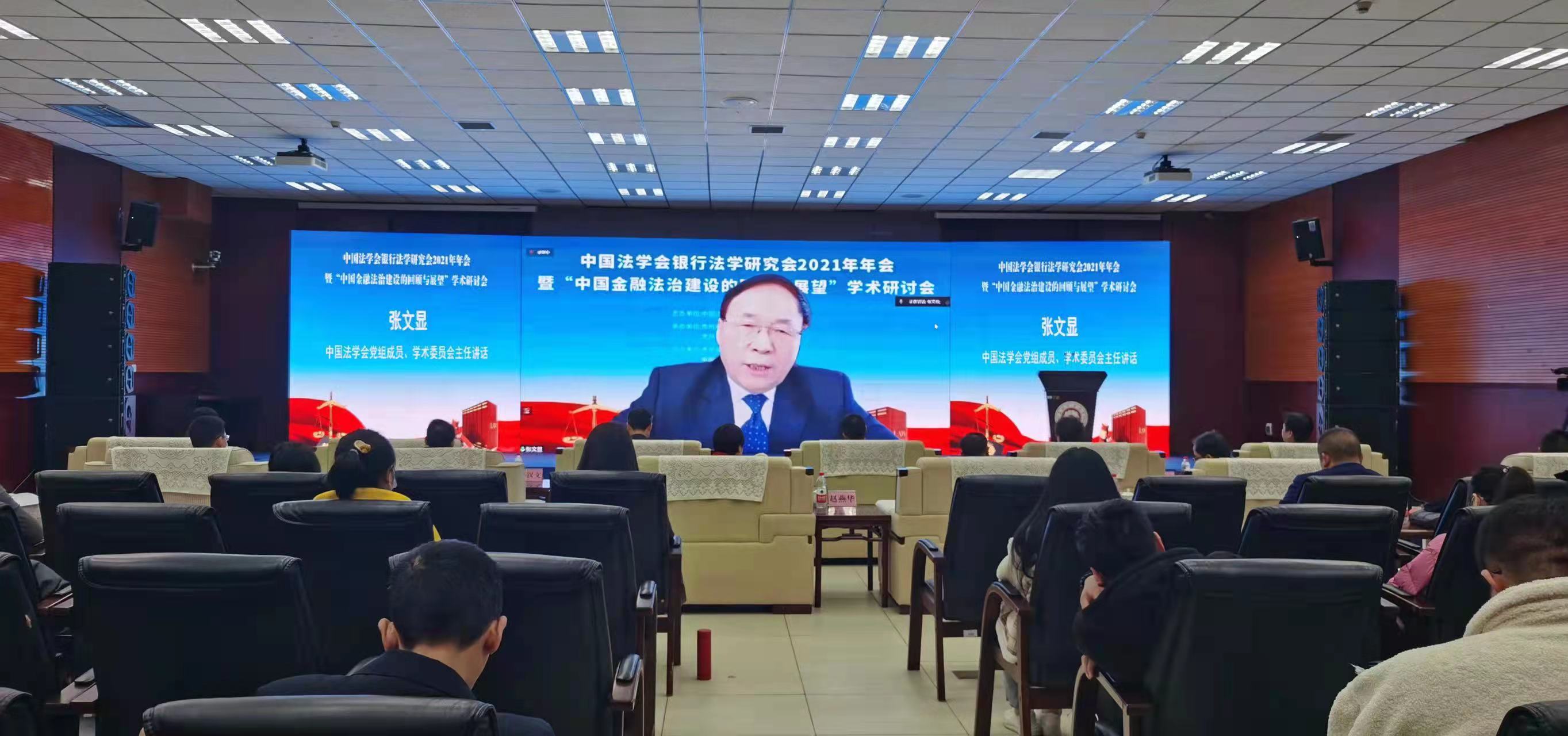(法学院 唐沁馨 报道|摄影 米钰)2021年12月11日,法学院承办的中国法学会银行法学研究会2021年年会暨“中国金融法治建设的回顾与展望”学术研讨会在od平台官方官网花溪校区成功举行。本次年会由中国法学会银行法学研究会主办,od平台官方官网和贵州省法学会金融法学研究会联合承办。贵州财经大学党委副书记、校长赵普教授,中国法学会党组成员、学术委员会主任张文显教授,中国法学会银行法学研究会会长、中国政法大学王卫国教授,中国法学会银行法学研究会名誉会长、原中国建设银行副行长黄毅,中国法学会银行法学研究会常务副会长、中国银保监会首席风险官刘福寿,贵州省法学会专职副会长兼秘书长王占霞,中国光大银行贵阳分行行长赵军强出席了本次年会,来自全国27家高校、银行及律师事务所的专家学者1500人参加了线上会议。会议由贵州财经大学党委委员、副校长李汉文教授主持。