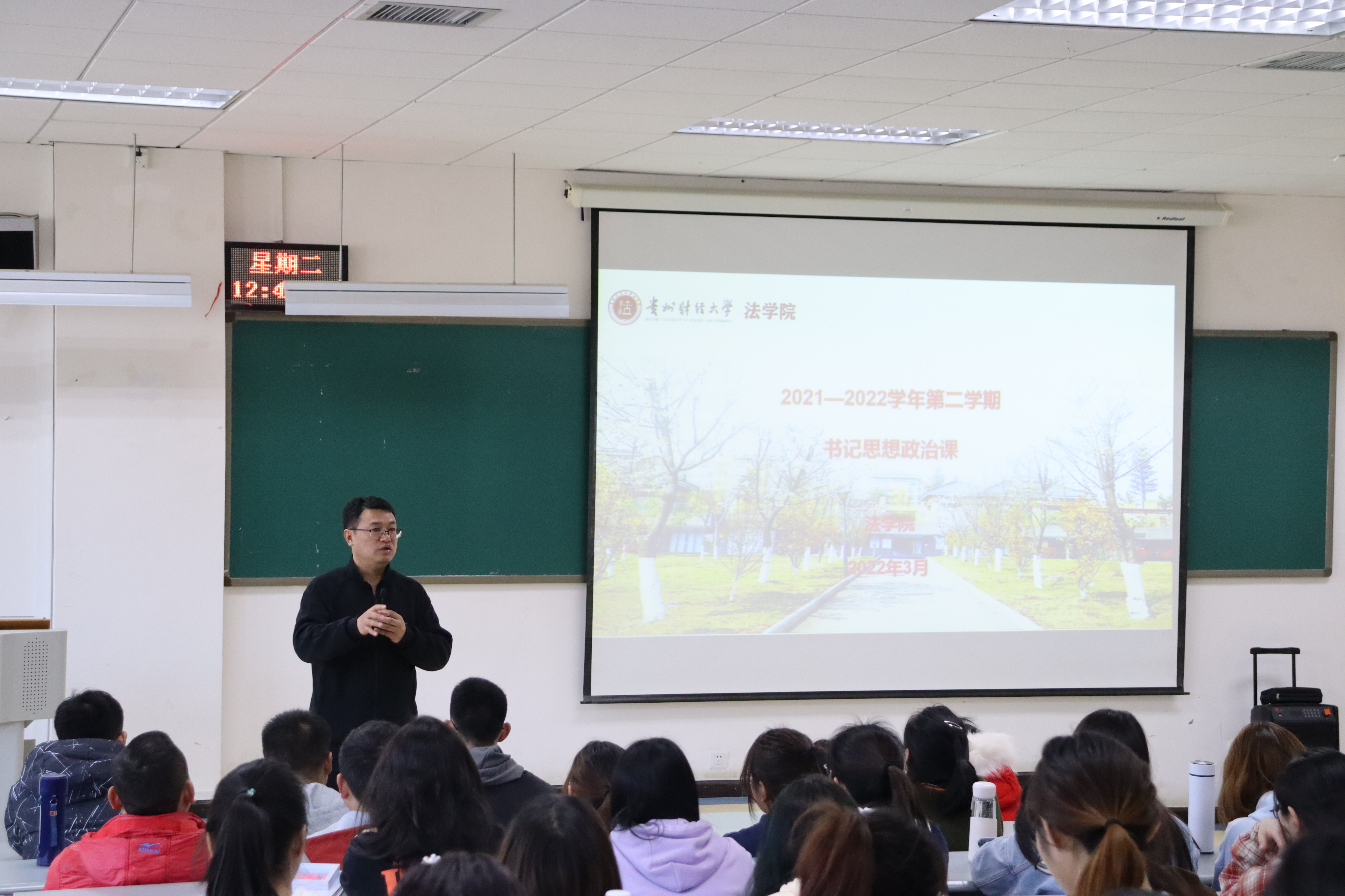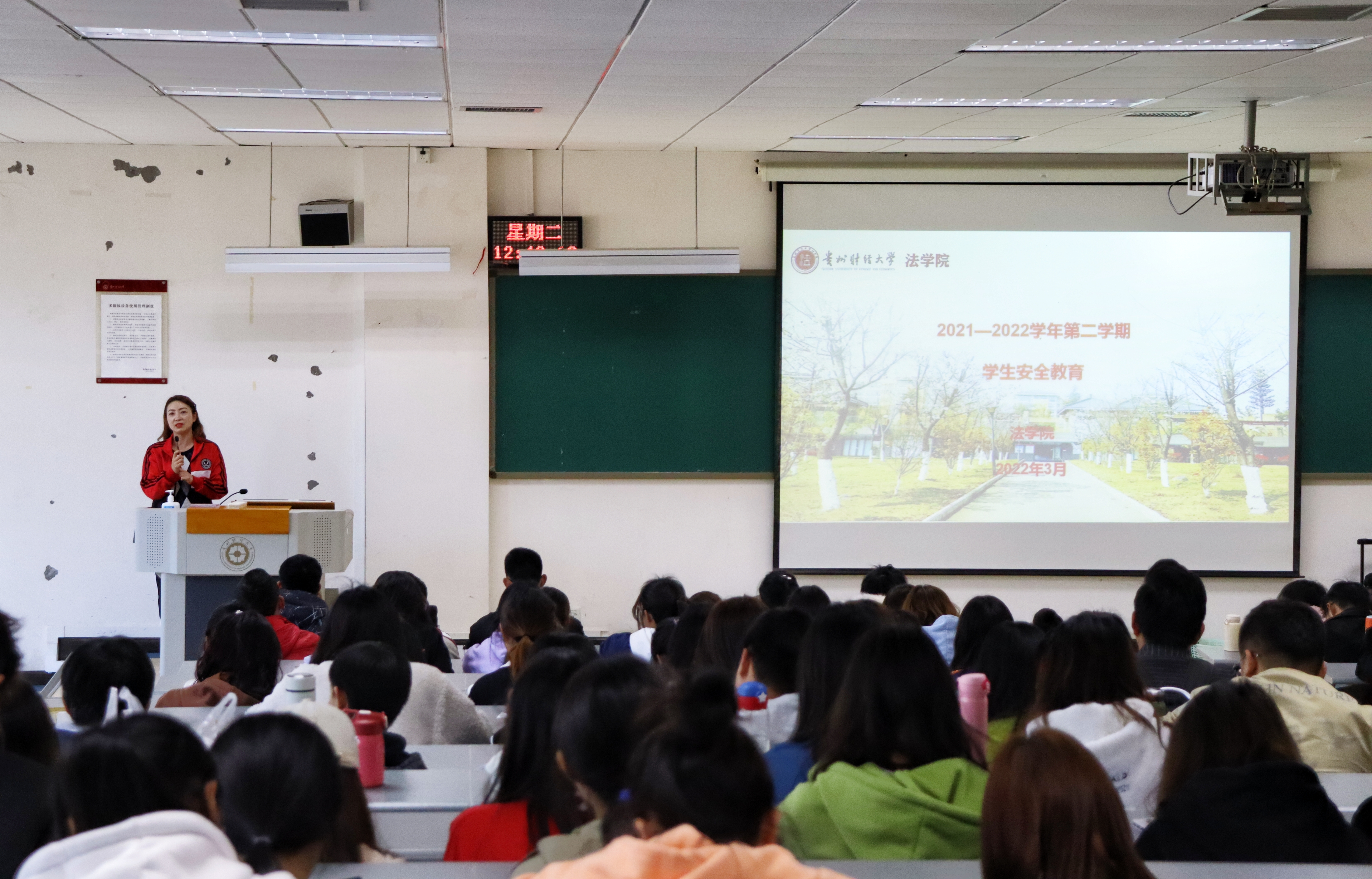 (法学院 罗梓尹 报道/摄影 张月娇)为加强新学期学生安全教育、思想政治教育,帮助学生以更好的精神面貌开始新学期的学习生活以及鼓励动员学生积极参加中国国际“互联网+”大学生创新创业大赛、“挑战杯”中国大学生创业计划竞赛、大学生创新创业训练计划项目等学科竞赛。2022年3月8日,在乐学楼阶1-1教室,法学院举办了2021-2022学年第二学期开学第一课暨学科竞赛培训会。法学院党委书记詹伟,党委副书记代莉莎、彭华,校团委组织部部长赵红亮,各年级辅导员以及法学院全体研究生、本科生,共计600余人参加。会议采取线上、线下同步开展的形式,代莉莎主持会议。
