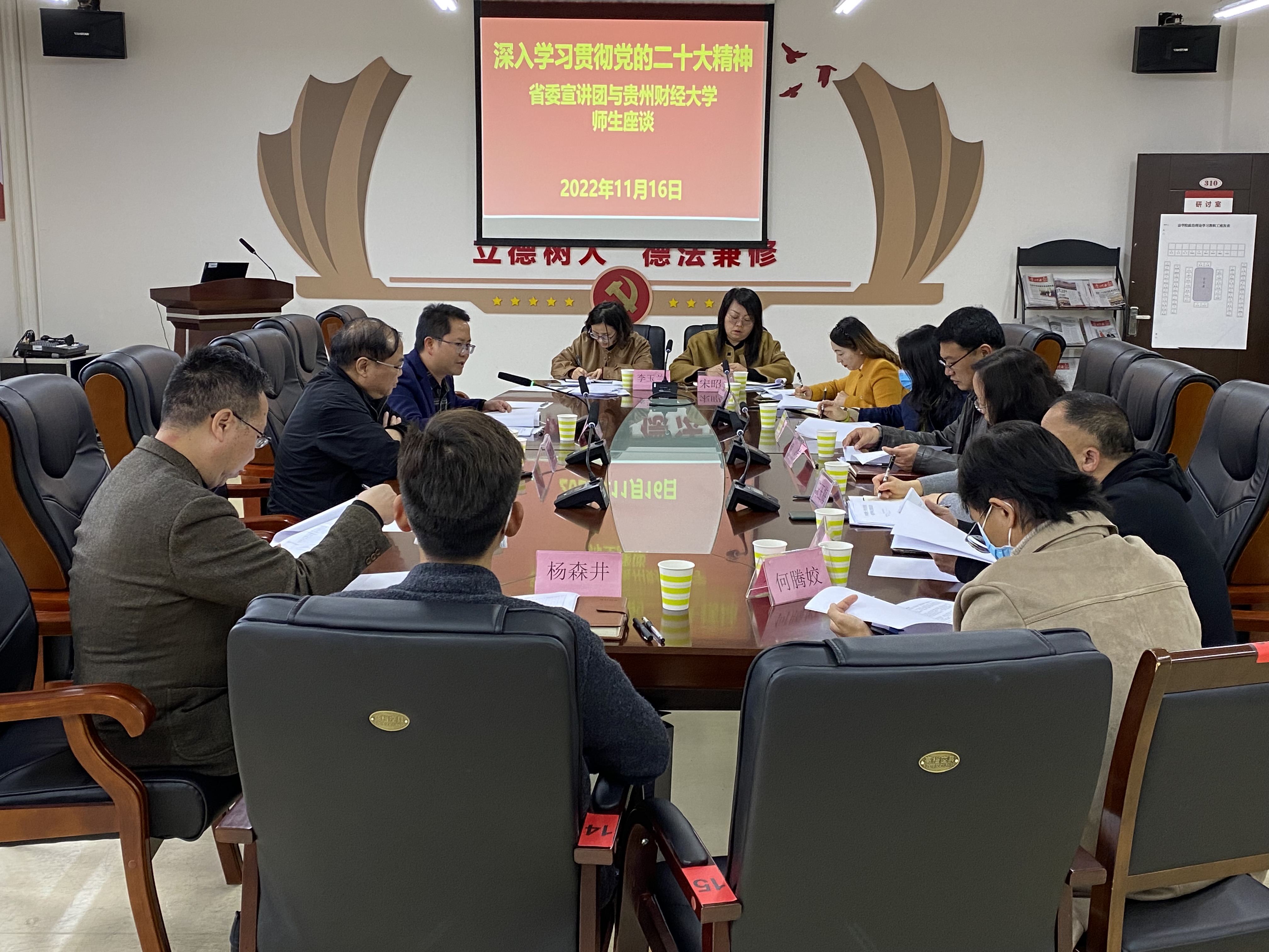 2022年11月16日,党的二十大精神省委宣讲团成员、贵州省社会科学院党委书记吴大华到od平台官方官网宣讲党的二十大精神,法学院党委班子全体成员、党员教师代表、非党员教师代表、党务干部等20余人参会。