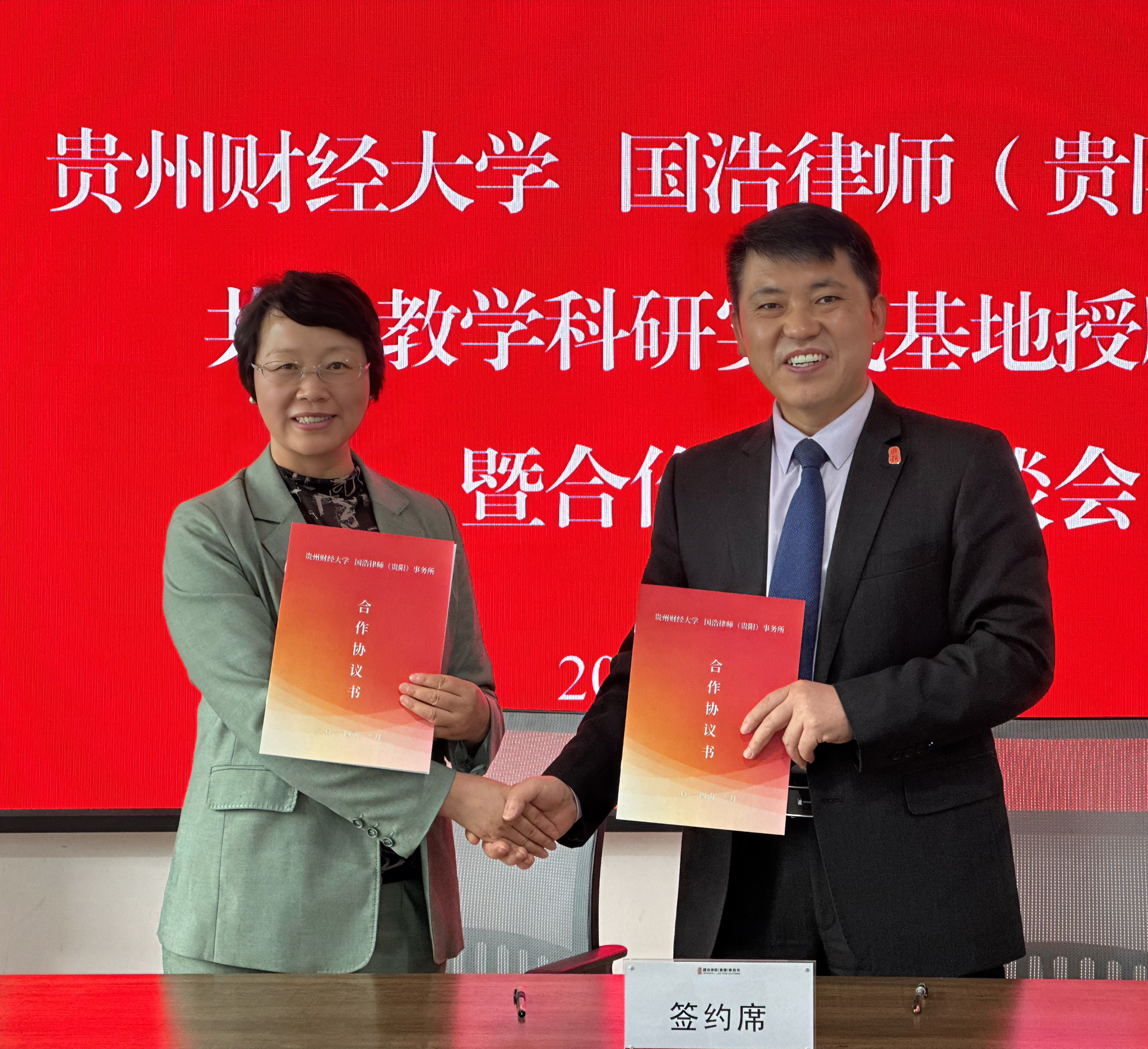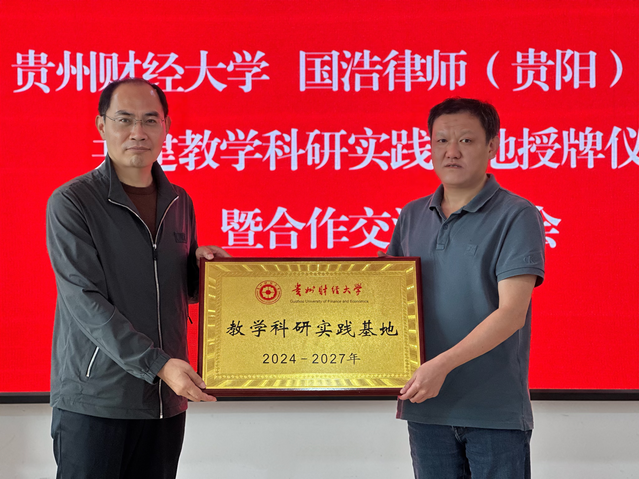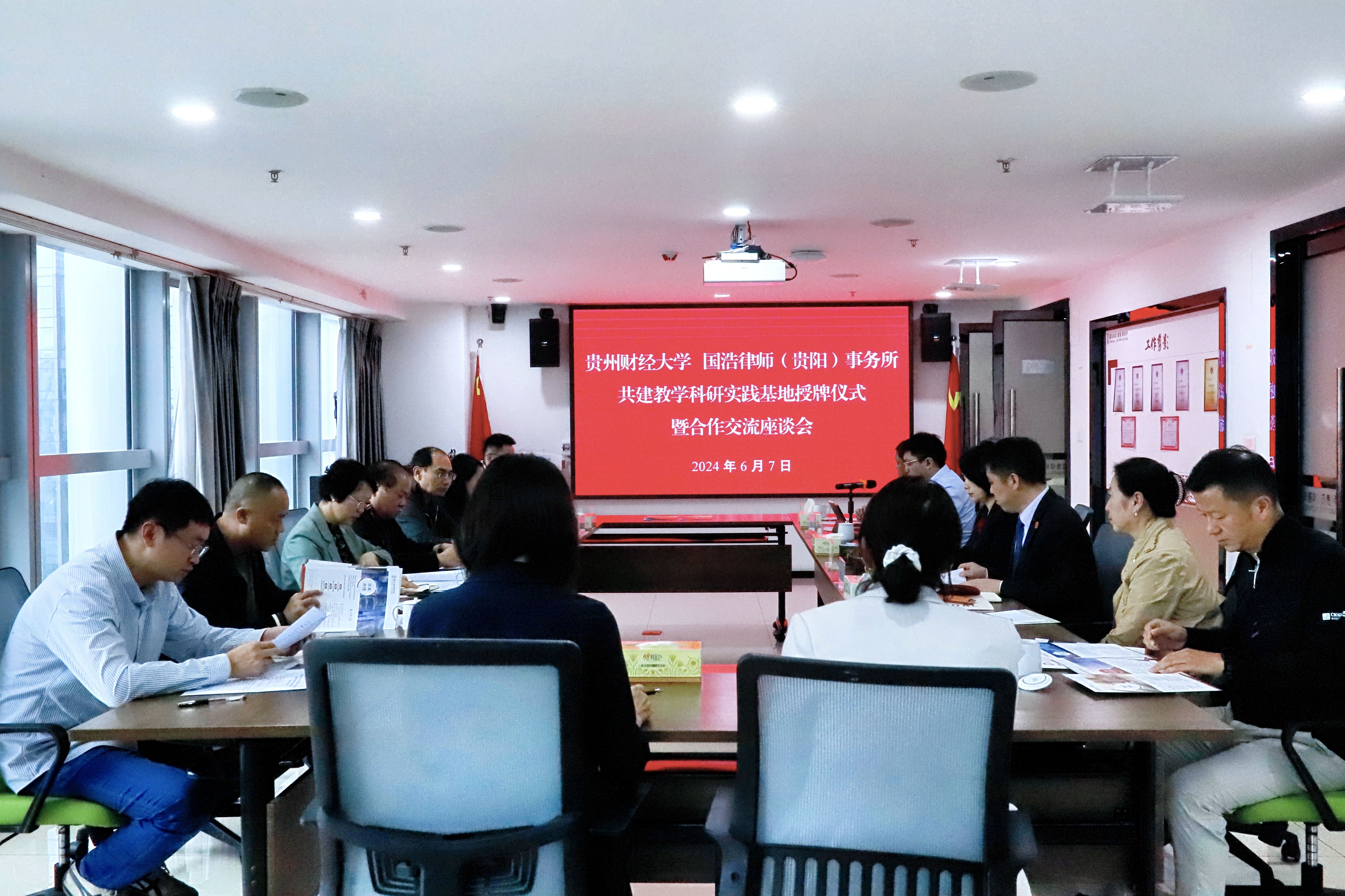 (法学院 王霖 图文/报道)2024年6月8日下午,贵州财经大学特聘教授、贵州省社会科学院原党委书记吴大华;od平台官方官网党委书记邵新顺,党委副书记、院长陈玉梅一行前往国浩律师(贵阳)事务所(以下简称为“国浩贵阳律所”),举行共建教学科研实践基地授牌仪式暨合作交流座谈会。贵州省律师协会会长、国浩贵阳律所合伙人白敏;国浩贵阳律所主任、管理合伙人郑世红,党支部书记、管理合伙人兰钢等人员出席会议。会议由国浩贵阳律所管理合伙人潘志成主持。双方就党建工作开展、法商融合型人才培养、科研合作创新、实践成果转换等问题进行了深入交流。
