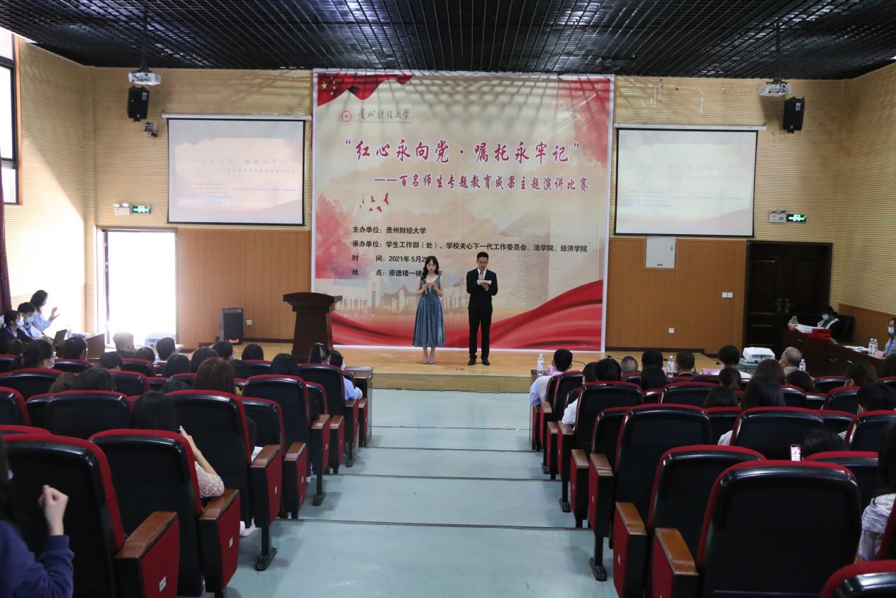 (法学院 程宇 报道|摄影 万沙 米钰)5月25日,od平台官方官网在崇德楼报告厅举行“红心永向党 嘱托永牢记”百名师生专题教育成果演讲比赛。本次比赛由学生工作部(处)、学校关心下一代工作委员会、法学院、经济学院承办,贵州省演讲研究会副秘书长、中国春晖演讲团宣讲员熊书毅,贵州省职工读书演讲协会副秘书长、贵州省演讲研究会会员韩丹,学生工作部(处)副部(处)长陈晓勇,学生工作部(处)何祖星,关心下一代工作委员会史恩贤担任评委,法学院党委书记詹伟、各学院参赛选手以及全校师生共计200余人参加活动。