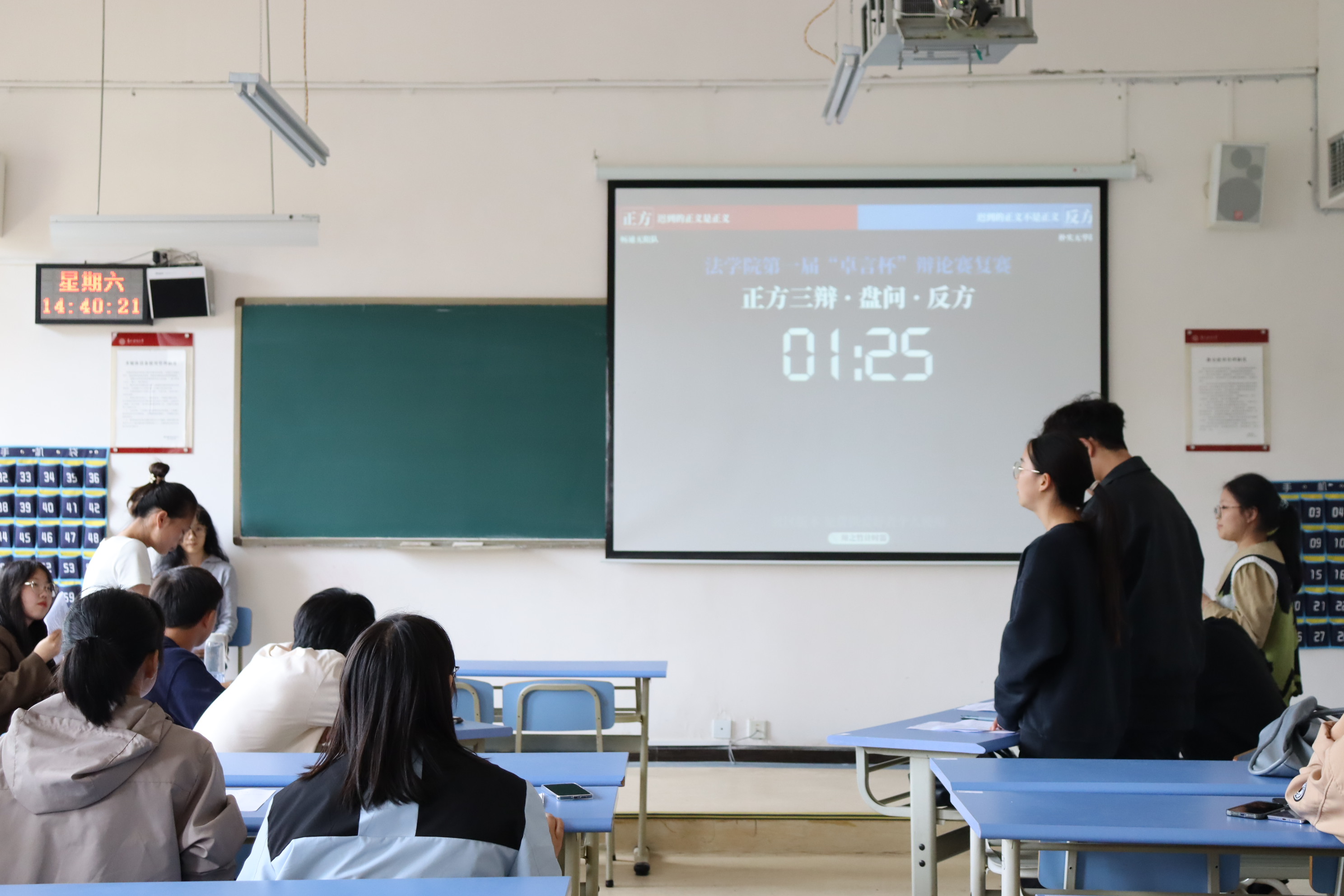 本次比赛共三场,辩题类型多样,紧贴生活实际。参赛队伍随机应变、针锋相对、斗智斗勇,辩驳条理清晰、机智风趣,博得了评委的认可。最终,经过两天激烈的辩论,畅通无阻队、穿梭在银河的火箭队、水落石出队获胜,成功晋级。本次辩论赛在激烈的掌声中落下了帷幕。